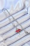 Zarif Kadın için Silver Çelik Zincir Kırmızı Etekli Zirkonlu Balerin Kolye