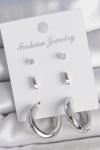 Zarif Kadın için Silver Pirinç Zirkonlu Stil Halka 3 Çift Küpe Seti