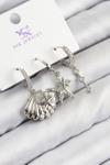 Zarif Kadın için Silver Pirinç Zirkonlu Üçlü Yıldız Ve İstiridye Küpe
