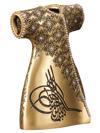 Tasarımımızın ön yüz köşesine tuğra formunda Besmele’ yi meşk ettik.