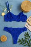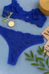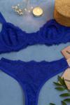 - Zarif mavi dantellerle süslenmiş, çiçek desenli transparan sütyen ve tanga takımı, feminen tarzınızı ön plana çıkarır.; - %90 polyester ve %10 elastan karışımından oluşan kumaşı sayesinde esnek yapıda olup vücut hatlarınıza mükemmel uyum sağlar.; - Pratik kullanım sunan çıtçıt kapama mekanizması ile kolayca giyilip çıkartılabilir; günlük veya özel günlerinizde rahatlıkla tercih edebilirsiniz.; - Askılı üst siluetiyle omuzları serbest bırakarak hafif ve konforlu bir deneyim sunar.; - Her sezon kullanabileceğiniz bu takım, stil sahibi gece kombinlerinizin vazgeçilmez parçası haline gelir.; - Balensiz tasarımıyla doğal göğüs şekline sahip olanların rahatça tercih edebileceği bir seçenektir.; - Dantel detaylarıyla göz alıcı bir görünüm kazandırırken, aynı zamanda sofistike bir dokunuş katmaktadır.; - Maksimum 30 derecede elde yıkama önerisiyle uzun süreli kullanım için idealdir; asarak kurutma işlemi yapmanız yeterlidir.; - Şık ve zarif ortamlarda kendinizi daha da özel hissetmenize yardımcı olacak bu iç giyim seti, stilinizi tamamlamanız için idealdir.; - Üretiminde kullanılan malzemelerin kalitesini koruyarak dayanıklılığı artırılmıştır ancak sürdürülebilirlik açısından bazı çevresel etkileri bulunabilir.; - Esnek yapısı sayesinde hareket özgürlüğünüzü kısıtlamadan konforlu bir kullanım sunar.; - İki parçadan oluşan bu paket içeriğiyle hem sütyen hem de tanga ihtiyacınızı tek seferde karşılayabilirsiniz.; - Paket içerisinde yer alan 2'li set sayesinde gardrobunuzda eksiksiz bir iç giyim çözümüne sahip olursunuz.; - Esnek yapısıyla her bedene uygunluk göstererek geniş kullanıcı kitlesine hitap eder.; - İç giyim koleksiyonunuzda yer alacak bu parça, şıklığı ve rahatlığı bir arada sunarak gardrobunuzu zenginleştirir.