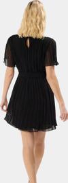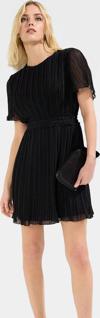 100% polyester şifon kumaş, kırışmaya dayanıklı yapısıyla sizi zorlamayacak. Belden açılan eteğiyle hareket özgürlüğü sağlarken, skater kalıbı ile vücut hatlarınızı zarifçe ortaya koyuyor. Bisiklet yakası ve kısa kolları ile hem şık hem de rahat bir görünüm sunuyor. Elbisenin kısa boyu ve feminen tasarımı, yaz aylarındaki özel davetleriniz için de mükemmel bir seçenek.