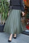 -Sonuç olarak, pileli parlak krep gizli lastikli haki etek, doğallık ve modern tarzıyla öne çıkan ve aynı zamanda rahatlığı ön planda tutan bir giyim parçasıdır.