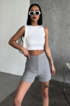 -Bu şık yüksek bel krep çımalı çizgili şort, gri tonuyla zamansız bir şıklık sunuyor. Esnek likralı kumaşı ve şık tasarımıyla hem rahatlık hem de tarz arayanların favorisi olmaya aday.