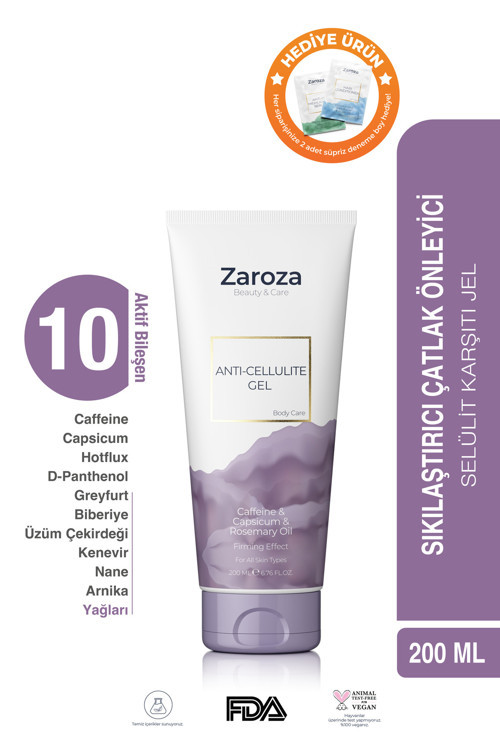Anti-Cellulite Gel Zaroza Anti-Selülit Jel, zengin içeriği ile ciltteki portakal kabuğu görüntüsünü gidermeye yardımcı olur. Caffeine, Greyfurt Yağı ve Biberiye Yağı ile selülitli bölgelerde cildin daha pürüzsüz ve daha sağlıklı görünmesini destekler. Capsicum ve Hotflux içeriği ile cilt yüzeyinde ısı oluşturarak nemlendirici ve sıkılaştırıcı etken maddelerin cilde daha iyi nüfuz etmesini sağlar. Yağsız ve yapışmaz dokusu ile sürüldükten sonra giyinmeye uygundur.