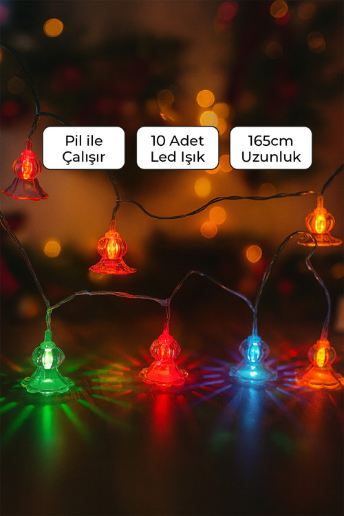 Uzunluk: 165cm Watt: 0.72W 10 adet led ışık zinciri Pil Kutusu: Açma / Kapama Butonu Pil: 2 adet AA Pil (Piller dahil değildir) Ağırlık: 55g Led Işık: Renkli Işık