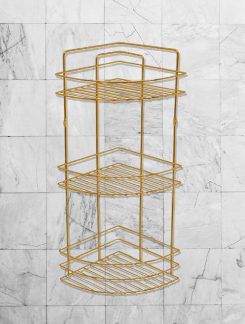 Zebra 3 Katlı Gold Banyo Köşeliği Şampuanlık Köşelik Banyo Rafı