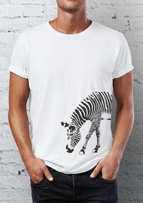 Zebra Baskılı Bisiklet Yaka Erkek Tişört