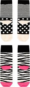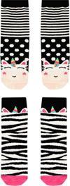 2'li soket, zebra desenli kız çorap. Dilerseniz zebra desenli elbise ile bu çorapları takımlayabilirsiniz. Yumuşak pamuk karışımlı ip ile örülmüştür.