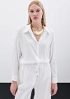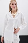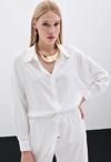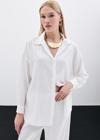 Ön gizli pat, düşük omuz, uzun kol, yanlar mini yırtmaçlı, zebra desenli salaş gömlek.