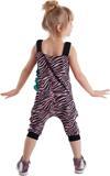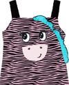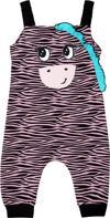 Zebra desenli, pamuklu kumaştan tulum. Tulumun üzeri zebra aplikelidir ve zabranın yelesi fırfırdan yapılmıştır. Elastik omuz askıları sayesinde kolayca giyilip çıkarılabilir.