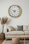 40 cm gold metal duvar saati, klasik şıklık ile modern tasarımın birleştiği özel bir dekorasyon ürünüdür. Gold çerçevesinin parlak yapısı, mekâna anında değer katan lüks bir görünüm oluştururken, beyaz kadran ve siyah Roma rakamlarının uyumu saatin hem sade hem de göz alıcı olmasını sağlar.