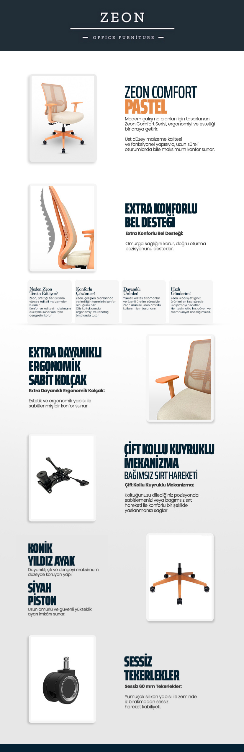 Zeon Büro Ofis Sistemleri // Comfort Pastel Çalışma Koltuğu Yönetici Koltuğu Genç Odası Çalışma Koltuğu