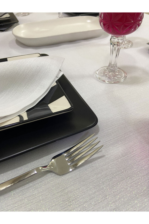 1 adet simli beyaz masa örtüsü