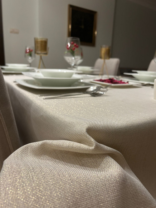 Uyumlu set: Simli Gold Masa örtüsü ve runner bir arada