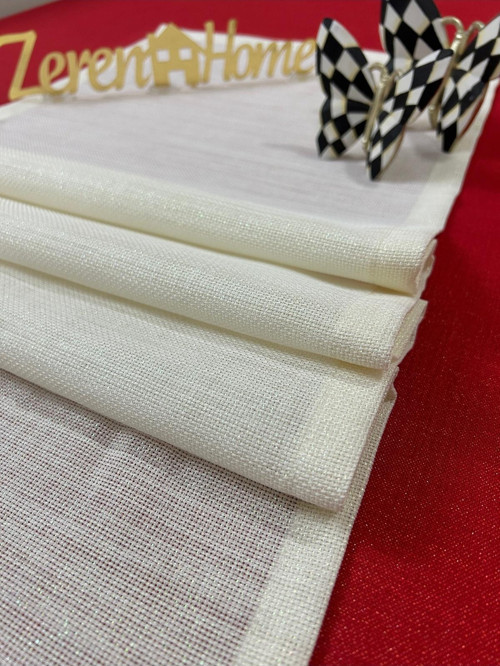 Zeren Home Keten Görünümlü Simli Linen Krem Runner 40 x 160