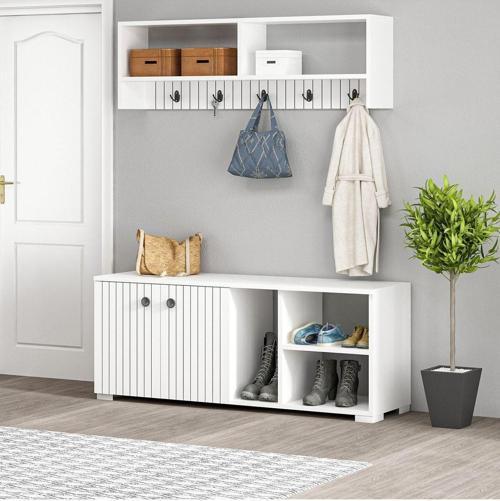 Zerka Concept Flame Iki Kapaklı Yedi Raflı Portmanto Ayakkabılık Beyaz