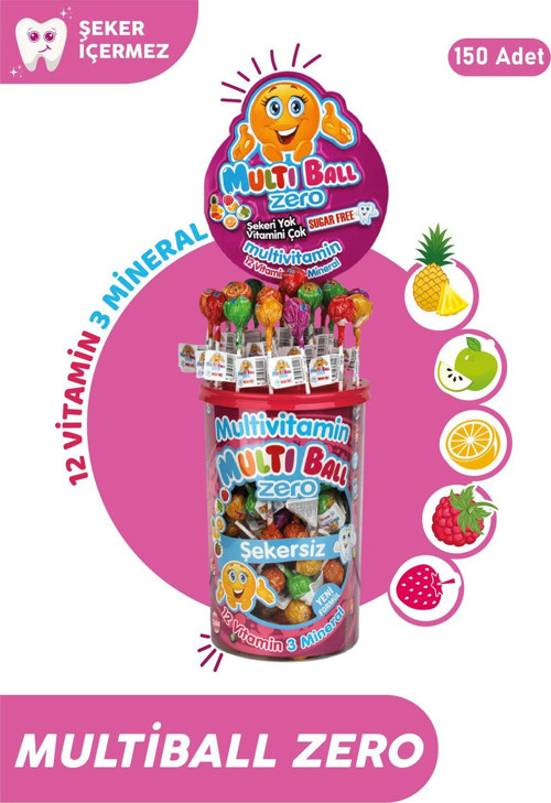 Multi ball ZERO multivitaminli lolipoplar Çocukların zeka gelişimi ve okuldaki başarısı için önemli B grubu vitaminleri içerir. Sağlıklı kemik gelişi için gerekli 200 IU D vitamini ihtiva eder.
