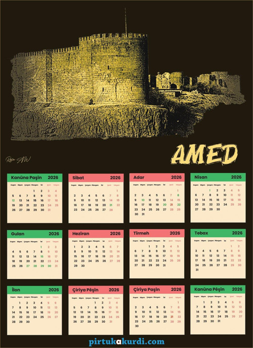 Zerya Hobi tarafından üretilen bu Kürtçe takvim, 2026 yılı için özel olarak tasarlanmıştır.