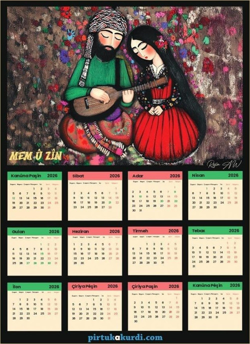 Mem û Zîn temasıyla zenginleştirilmiş olan bu takvim, kültürel bir dokunuş arayanlar için idealdir.