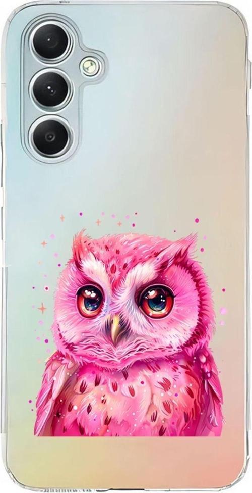 Zeynoiletişim Samsung Galaxy A35 Uyumlu Pembe Baykuş Desenli Silikon Kılıf