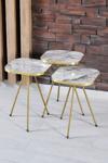 Ürün özellikleri **1 .Sınıf gold pvc kullanılmıstır. ; **1.Sınıf metal ayak kullanılmıştır. ; **üst tabla 1.Sınıf yonga levga ile üretilmiştir. ; **ürün demonte olarak gönderilmekte olup, basit ve eğlenceli kuruluma sahiptir **mermer desenli görünüm. ; Ürün ölçüleri Ölçü tüm üst tablalar 34×34 ?üçuk boy zigon 47 cm Orta boy zıgon 50 cm Buyuk boy zıgon 53 cm;