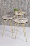 Zigon Sehpa 3'lü Altın Metal Ayak Krem Altın