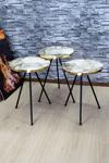 Ürün 1.Kalite metal ayaktır Üst tablalar yonga levha olup Kurulumu çok basittir Üst tabla genişliği 34 cm dir Yükseklik Büyük sehpa 53 cm Orta sehpa 50 cm Küçük sehpa 47 cm dir.. Ücretsiz kargo ..