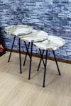 interGO Üçlü Zigon Sehpa Ahşap Ayaklı Yuvarlak Mermer Desenli Tasarım Efes