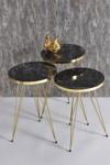 Bengi Ticaret Brc YONCA Zigon-Orta Sehpa Düz Siyah Temper Cam Metal Çelik Gold Kaplama El Yapım