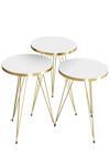 ZİGON SEHPA TÜM ÜST ÇAPLAR:34 CM; ZİGON KÜÇÜK YÜKSEKLİK :47 CM; ZİGON ORTA YÜKSEKLİK :51 CM; ZİGON BÜYÜK YÜKSEKLİK:55 CM; Kenarları 1. sınıf ÖZEL ÜRETİM GOLD PVC bant ile kaplıdır.; Kullanılan malzemeTSE, Avrupa Birliği EN, ISO 9001 ve FSC belgelerine sahiptir.; Ayaklar 1.kalite Metaldir.; Paketlerde kolay kurulum için gerekli tüm vida ve aksesuarlar bulunmaktadır.; Ürünün montajı oldukça kolaydır.Basit el aletleri ile kolayca kurulum yapabilirsiniz.; Hızlı ve hatasız kurulum için parça üzerinde kurulum şeması ile uyumlu parça bulunmaktadır.;