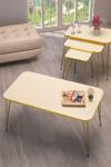 ORTA SEHPA: EN BOY:50*90 ORTA SEHPA YÜKSEKLİK:43 CM ; ZİGON SEHPA ÖLÇÜLER: ; ZİGON BÜYÜK YÜKSEKLİK :55 CM EN:37 BOY:60 ; ZİGON ORTA YÜKSEKLİK :51 CM EN:37 BOY:44,5 ; ZİGON KÜÇÜK YÜKSEKLİK:47 CM EN:37 BOY:28 ; Üst tabla yonga levha olup, ayaklar 1.kalite metaldir. ; Kenarları 1. sınıf ÖZEL ÜRETİM GOLD PVC bant ile kaplıdır. ; Orta Sehpa ve 3.lü Zigon Sehpa Toplam 4 Parça Gönderim Sağlanmaktadır.. ; Kullanılan malzemeTSE, Avrupa Birliği EN, ISO 9001 ve FSC belgelerine sahiptir. ; Ayaklar 1.kalite Metaldir. ; Paketlerde kolay kurulum için gerekli tüm vida ve aksesuarlar bulunmaktadır. ; Ürünün montajı oldukça kolaydır.Basit el aletleri ile kolayca kurulum yapabilirsiniz. ; Hızlı ve hatasız kurulum için parça üzerinde kurulum şeması ile uyumlu parça bulunmaktadır. ;