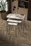 ORTA SEHPA: EN BOY:50*90 ORTA SEHPA AYAK YÜKSEKLİK:43 CM ; ZİGON SEHPA ÖLÇÜLER: ; BÜYÜK ZİGON YÜKSEKLİK:55 CM EN:37 BOY:60 ; ORTA ZİGON YÜKSEKLİK :51 CM EN:37 BOY:44,5 ; KÜÇÜK ZİGON YÜKSEKLİK:47 CM EN:37 BOY:28 ; Kenarları 1. sınıf ÖZEL ÜRETİM GÜMÜŞ PVC bant ile kaplıdır. ; Orta Sehpa ve 3.lü Zigon Sehpa Toplam 4 Parça Gönderim Sağlanmaktadır.. ; Kullanılan malzemeTSE, Avrupa Birliği EN, ISO 9001 ve FSC belgelerine sahiptir. ; Ayaklar 1.kalite Metaldir. ; Paketlerde kolay kurulum için gerekli tüm vida ve aksesuarlar bulunmaktadır. ; Ürünlerimiz DEMONTE olarak gönderilmektedir ve montajı oldukça kolaydır. Basit el aletleri (tornavida ya da matkap) ile kolayca kurulum yapabilirsiniz. ; Hızlı ve hatasız kurulum için parça üzerinde kurulum şeması ile uyumlu parça bulunmaktadır... ;