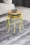 Bengi Ticaret Brc 17879 RİVOLİ Zigon Sarı Mermer Temper Cam Metal Altın Kaplama Ayak El Yapım