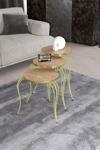 Bengi Ticaret Çanta Zigon 90075 Sehpa Yonca Model 2li Takım Ahşap MDF Hardal-Ceviz Renk El Yapı