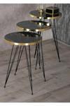 ED Efelez Design Lyon 3'lü C Zigon Sehpa Beyaz Metal - Siyah Mermer Tabla