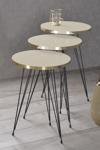 Ölçüler Çap Büyük 34cm Orta 34cm Küçük 34cm Yükseklik Büyük 55cm Orta 51cm Küçük 47cm Açıklama * Kenarları 1. ; sınıf ÖZEL ÜRETİM GOLD PVC bant ile kaplıdır. ; * Kullanılan malzeme TSE, Avrupa Birliği EN, ISO 9001 ve FSC belgelerine sahiptir. ; * Ayaklar 1.kalite Metaldir. ; * Paketlerde kolay kurulum için gerekli tüm vida ve aksesuarlar bulunmaktadır. ; * Ürünün montajı oldukça kolaydır.Basit el aletleri ile kolayca kurulum yapabilirsiniz. ; * Hızlı ve hatasız kurulum için parça üzerinde kurulum şeması ile uyumlu parça bulunmaktadır. ; * Size Ulaştırılırken Korunaklı Özel Ambalajlama Sistemi Kullanılmaktadır.;