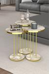 interGO Üçlü Zigon Sehpa Ahşap Ayaklı Yuvarlak Mermer Desenli Tasarım Efes