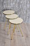 ORTA SEHPA:EN BOY:50*90 ORTA SEHPA YÜKSEKLİK:42 CM ; ZİGON SEHPA TÜM ÜST ÇAPLAR:34 CM ; ZİGON KÜÇÜK YÜKSEKLİK :46 CM ; ZİGON ORTA YÜKSEKLİK :49 CM ; ZİGON BÜYÜK YÜKSEKLİK:52 CM; Kenarları 1. sınıf ÖZEL ÜRETİM SİYAH-GOLD PVC bant ile kaplıdır.; Orta Sehpa ve 3.lü Zigon Sehpa Toplam 4 Parça Gönderim Sağlanmaktadır.. ; ?Kullanılan malzemeTSE, Avrupa Birliği EN, ISO 9001 ve FSC belgelerine sahiptir. ; Ayaklar 1.kalite Metaldir. ; Paketlerde kolay kurulum için gerekli tüm vida ve aksesuarlar bulunmaktadır. ; Ürünün montajı oldukça kolaydır.Basit el aletleri ile kolayca kurulum yapabilirsiniz. ; Hızlı ve hatasız kurulum için parça üzerinde kurulum şeması ile uyumlu parça bulunmaktadır.;