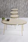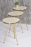 Zigon Sehpa Ve Orta Sehpa Elips Set Çift Gold Krem Tel Ayak