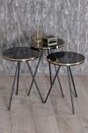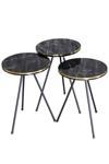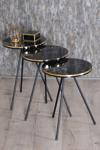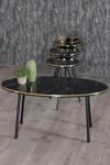 Zigon Sehpa Ve Orta Sehpa Elips Set Siyah Metal Ayak Çift Altın Bendir