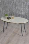 Zigon Sehpa Ve Orta Sehpa Elips Set Siyah Metal Ayak Çift Altın Krem