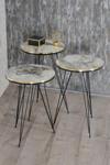 Zigon Sehpa Ve Orta Sehpa Elips Set Siyah Tel Ayak Çift Altın Efes
