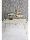 ORTA SEHPA:EN BOY:50*90 ORTA SEHPA YÜKSEKLİK:43 CM; ZİGON SEHPA TÜM ÜST ÇAPLAR:34 CM; ZİGON KÜÇÜK YÜKSEKLİK :47 CM; ZİGON ORTA YÜKSEKLİK :51 CM; ZİGON BÜYÜK YÜKSEKLİK:55 CM; Kenarları 1. sınıf özel imal edilmiş SİYAH-GOLD Çift Renk PVC bant ile kaplıdır.; Ürünlerimiz Orta Sehpa ve 3'lü Zigon Sehpa olarak toplam 4 Parça gönderilmektedir.; TSE, Avrupa Birliği EN, ISO 9001 ve FSC belgelerine sahiptir.; Ayaklar 1.kalite Metaldir.; Paketlerde kolay kurulum için gerekli tüm vida ve aksesuarlar bulunmaktadır.; Ürünün montajı oldukça kolaydır.Basit el aletleri ile kolayca kurulum yapabilirsiniz.; Hızlı ve hatasız kurulum için parça üzerinde kurulum şeması ile uyumlu parça bulunmaktadır.;