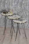 Bengi Ticaret Zigon 134003 Sehpa Demet Model Metal Nikelaj Ayak Mermer Dalgalı Desen El Yapım