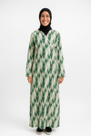 Zigzag Desenli Kruvaze Namaz Elbisesi – %100 Viskon, Yandan Bağlamalı 36-46 Beden