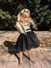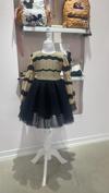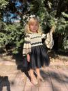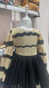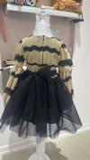 Zarif zigzag desenli triko üst ve kabarık siyah tül etekten oluşan bu şık takım, özel günlerde kız çocuklarına modern ve sevimli bir görünüm kazandırır. Saç bandı detayıyla kombini tamamlayan tasarım, hem rahat hem de şık bir seçenek sunar. Özel günlerde, davetlerde veya fotoğraf çekimlerinde dikkat çekici bir kombin alternatifi sunar.