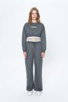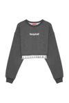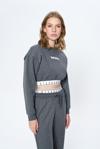 Beli Sayı Detaylı Crop Sweatshirt Antrasit;