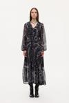Etnik Desenli Volan Yaka Uzun Elbise Siyah