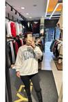 Ziley Quzu PARİS Nakış Detaylı Sweatshirt Ekru